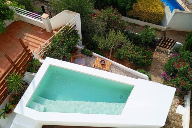 En la segunda planta encontramos la zona de noche con 2 habitaciones dobles, ambos con acceso a terraza que nos lleva a la piscina privada con vistas al mar y un jardín. En esta planta encontramos un baño para compartir. e increíble vistas al mar desde todas las habitaciones,