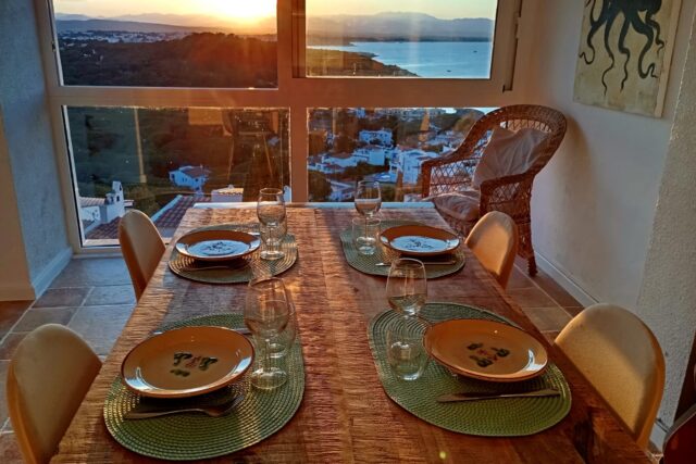Primera planta encontramos un garage, un amplio salon comedor con increibles vistas al mar, cocina independiente y un aseo.